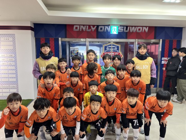 수원FC 홈 경기에 수원MB 선수들이 에스코트를 했습니다.